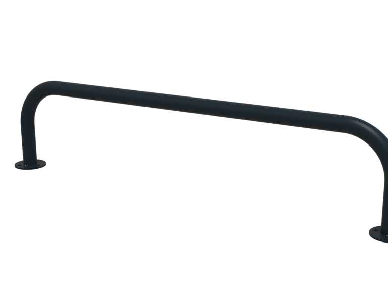 Cet arceau permet d’attacher un vélo en trois points ; roue avant, cadre et arceau avec un cadenas en U.